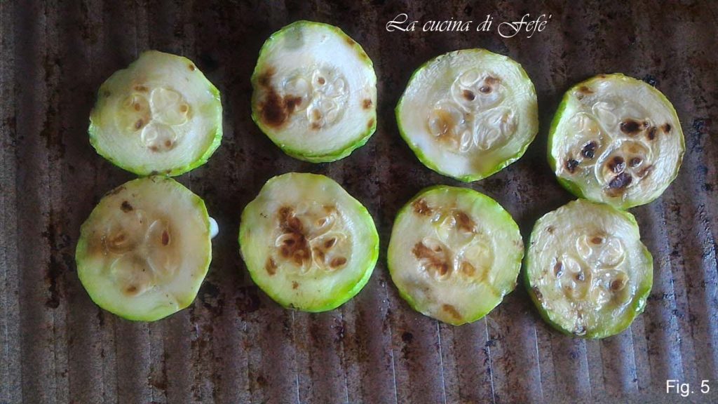 Schneiden Sie die Zucchini in Scheiben und grillen Sie sie auf einer heißen Platte für wenige Minuten pro Seite (Abb. 5).