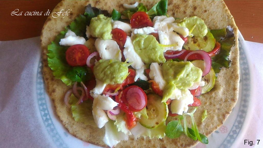 Im Sommer wissen wir, dass wir frischere und leichtere Mahlzeiten bevorzugen. Das Zauberwort ist einfach, aber verlockend, nicht banal. Und wir genießen es im Freien, während wir am Meer sind oder bequem im eigenen Garten zu Hause, mit der Familie oder mit Freunden! Also schlage ich eine originelle und alternative Art vor, Ihre Gäste zu überraschen und ein einzigartiges Gericht auf den Tisch zu bringen, das nach ehrlichen Dingen duftet. Ein Wrap aus halbvollen Olivenöl-Fladen, viel rustikaler und leichter, da sie ohne Schweineschmalz und Hefe sind! Einmal in ihrer hausgemachten Zubereitung geschätzt, können sie nach Belieben gefüllt werden. Eine der traditionellen Füllungen ist mit rohem Schinken und Mozzarella, aber wenn man zum Beispiel einer veganen Ernährungsweise folgt, kann man Tofu hinzufügen, vielleicht begleitet von Auberginen, Zucchini und Tomaten. Ich biete Ihnen meine vegetarische Version an, mit gegrilltem Sommergemüse, rote Zwiebeln aus Tropea, Kirschtomaten Igp aus Pachino, Feldsalat, Büffelmozzarella und einer Avocadosoße mit Ingwer, die Tote erwecken kann! Das Ganze wird wie ein Sandwich eingewickelt und in der Pfanne jeweils eine Minute pro Seite gebraten, um die Knusprigkeit zu erreichen, die sie köstlich und unwiderstehlich macht!