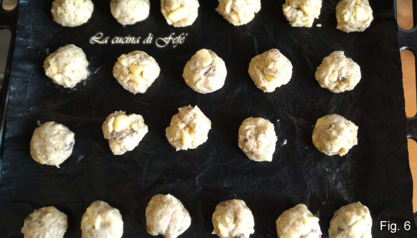 • Nehmen Sie mit einem Löffel Teile dieser Masse und formen Sie mit leicht feuchten Händen Kugeln, die etwas größer als eine Walnuss sind, und legen Sie sie mit ausreichend Abstand auf ein mit Backpapier oder recycelbarem Teflonpapier belegtes Backblech (Abb. 6).