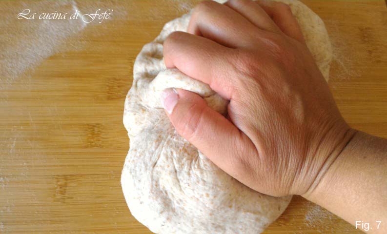 • Den Teig noch einige Minuten auf einer leicht bemehlten Arbeitsfläche bearbeiten und mehrmals schlagen (Abb. 7).