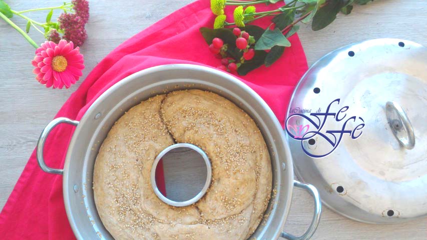 🟣Wenn Sie keinen Fornetto Versilia besitzen, können Sie den Teig in einer gut geölten und bemehlten Kranzform gleicher Größe im Ofen bei 180 °C für etwa 25′-30′ backen, aber machen Sie immer die Stäbchenprobe.