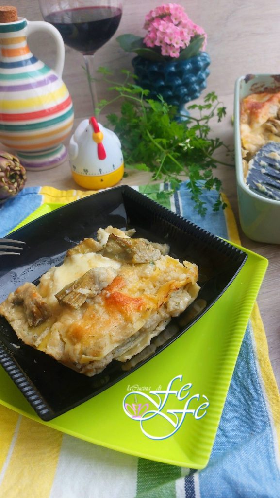Dieses Jahr habe ich wirklich viele Artischocken gekauft, vielleicht weil sie im Vergleich zum Vorjahr, als sie sehr selten und teuer waren, auf dem Wochenmarkt in meiner Nähe an jeder Ecke und zu günstigeren Preisen zu finden waren! Also habe ich alles Mögliche damit gemacht! Zuerst die Lasagne, auch weil ich sie mit meiner hervorragend erprobten Blumenkohl-Bechamel ausprobieren wollte. Das Ergebnis? Ein einzigartiger Genuss! Diese Artischocken-Lasagne ist nämlich eine vegetarische Variante, ebenso reichhaltig und schmackhaft, wie die klassischen mit traditionellem Bologneser Ragù. Und unter uns gesagt, ich kann sie besser verdauen! Sie werden perfekt für alle sein, die wie ich eine weiße Version bevorzugen, also ohne Tomaten und natürlich ohne Fleisch. Dank meiner Bechamel erhalten Sie ein gesünderes und leichteres Hauptgericht, ohne dass der geschmolzene und saftige Effekt fehlt! Diese spezielle weiße Lasagne wird so mit neuen und einladenden Geschmäckern bereichert, die ich Ihnen empfehle auszuprobieren und für die Sonntage mit der Familie oder auch für das Osteressen auf den Tisch zu bringen!