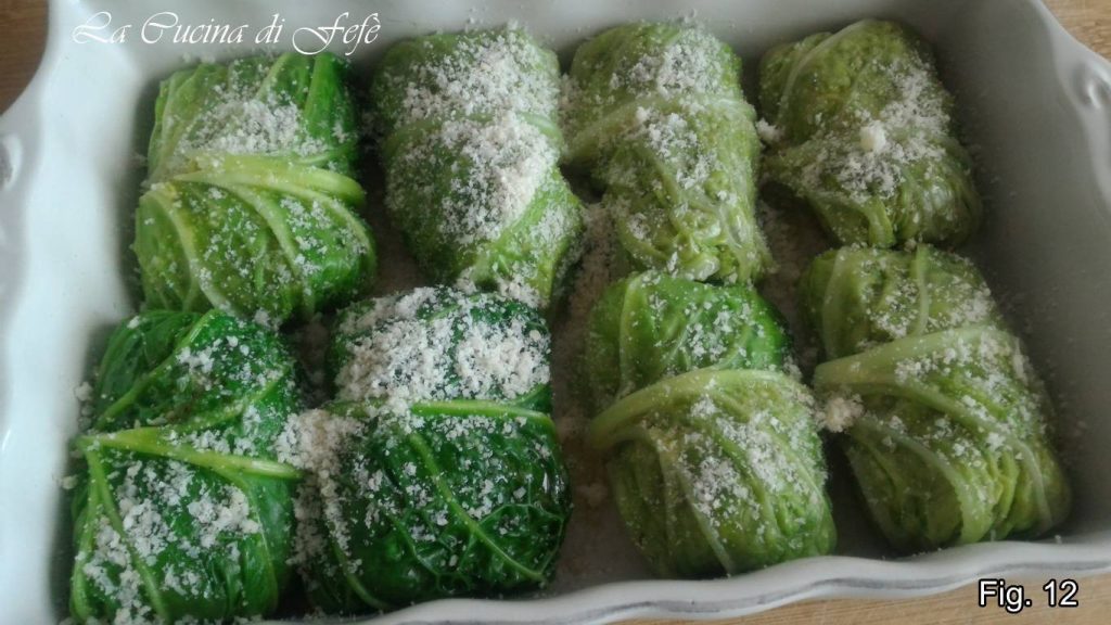 Lege die Röllchen nacheinander auf ein gut geöltes Backblech, träufle etwas zusätzliches Öl darüber und bestreue mit dem restlichen geriebenen Parmigiano. Gib alles in einen vorgeheizten Ofen bei 190 °C für 25 Minuten.