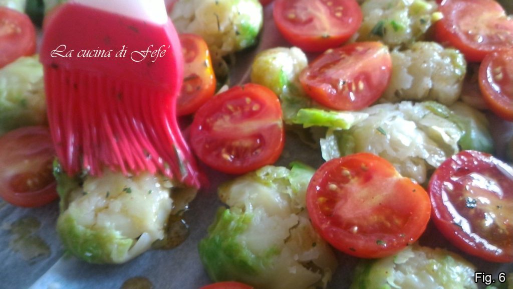 Nach dem gleichen Konzept der zerdrückten Ofenkartoffeln möchte ich euch heute eine ebenso leckere und schnelle Möglichkeit vorstellen, eine vegane Beilage auf den Tisch zu bringen! Natürlich ist die Idee von vegan in diesem Rezept so, dass keine tierischen Zutaten enthalten sind, aber nichts hindert euch daran, es weiter zu verfeinern mit dem, was euch eure Fantasie vorschlägt! Ich habe zum Beispiel nur Paniermehl kurz vor dem Backen hinzugefügt, aber wenn ihr möchtet, könnt ihr auch alles mit Käsewürfeln oder einer Prise geriebenem Parmesan aufpeppen. Die Zubereitung ist wirklich sehr einfach, sodass ihr in wenigen einfachen Schritten eure Gäste überraschen und die ganze Familie begeistern werdet! Der entscheidende Tipp für das Gelingen ist jedoch, nicht mit dem Dressing zu geizen! Es handelt sich um eine Mischung aus nativem Olivenöl extra, aromatisiert mit Knoblauch, Rosmarin und süßem Paprika. Einmal bestrichen und in den Ofen gestellt, werden die Rosenkohl in Kombination mit der Sanftheit der Kirschtomaten innen weich und außen knusprig, kurz gesagt, sie werden unwiderstehlich! Perfekt zu servieren mit Fleischbraten und gegrilltem Fleisch. Ideal für leichte und originelle Vorspeisen!