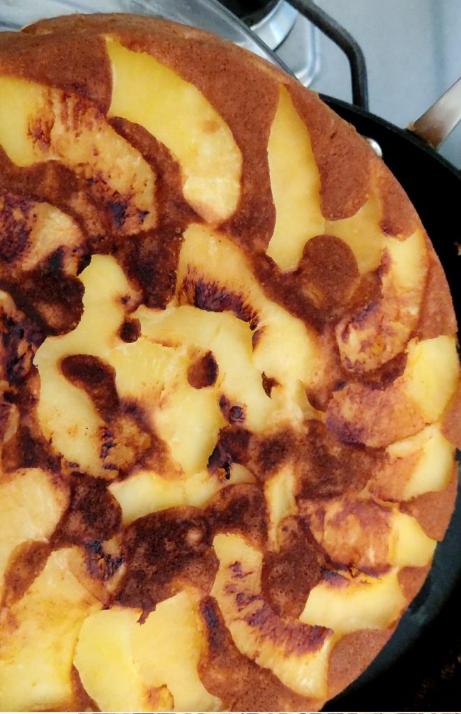 Wie man den Apfelkuchen in der Pfanne zubereitet