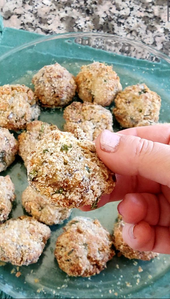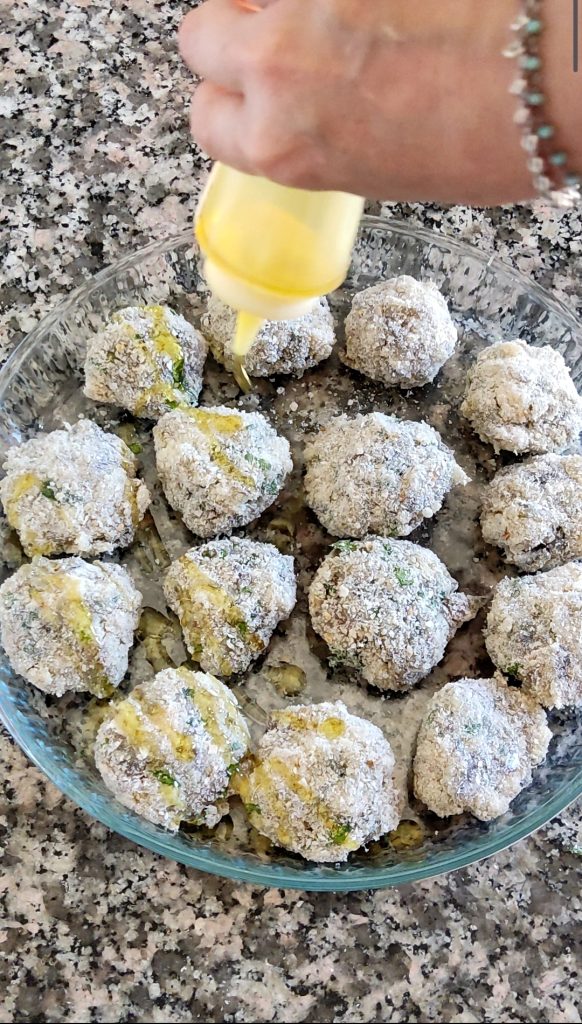 Backen Sie die Sardellenfrikadellen im vorgeheizten Ofen bei 190°C im statischen Modus für 22-24 Minuten oder bis sie goldbraun sind.