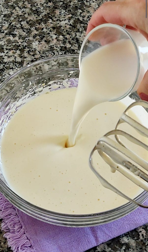 Fügt das Speiseöl, die Milch und die geriebene Zitronenschale hinzu. Vermischen.