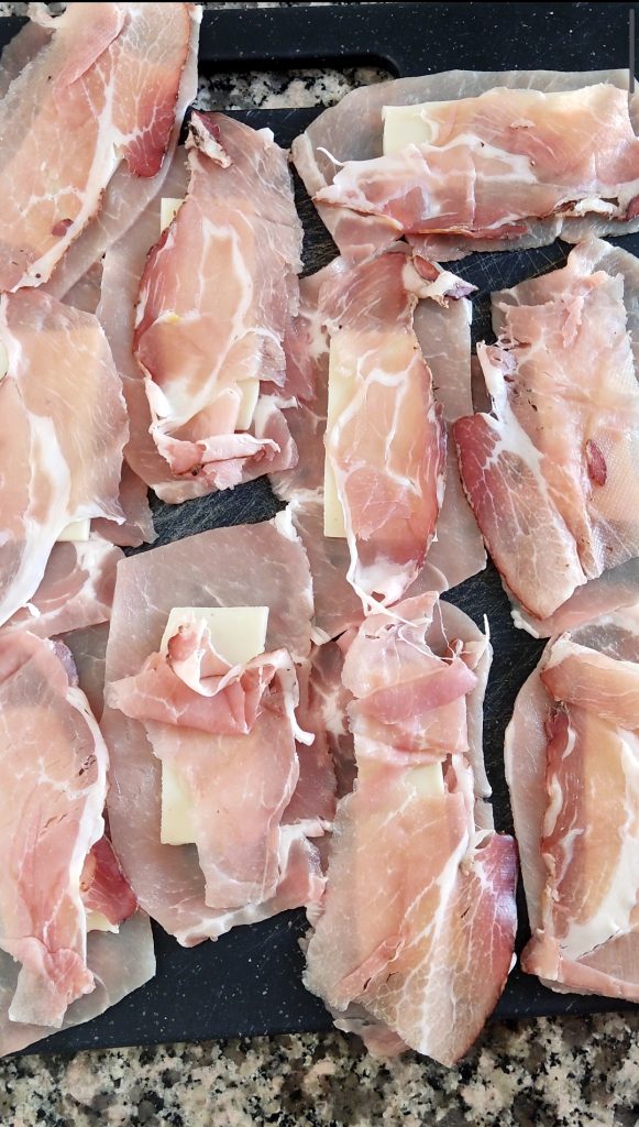 röllchen mit speck und scamorza