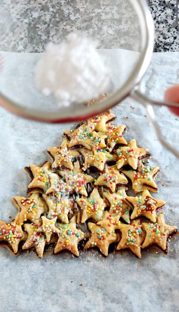 Weihnachtssternbaum mit Nutella das beste Weihnachtsdessert. Mein Zuhause duftet nach Keksen, Zimt und Schokolade. Das Rezept, das ich euch heute erzählen möchte, ist das eines Blätterteig- und Nutella-Baumes, perfekt als Festtagsdessert und in wenigen Minuten zubereitet. Mein Baum besteht aus vielen kleinen Blätterteig-Sternen, gefüllt mit Nutella, und schmeckt köstlich! Eine ganz einfache und schnelle Idee, um den Festtagstisch zu bereichern, denn wie jeder weiß, gibt es an Weihnachten nie genug Süßigkeiten. Diese schnellen Rezepte werden euch bei Verwandten und Freunden gut aussehen lassen. Verpasst nicht das Rezept der Neapolitanischen Mostaccioli und das Rezept der Cartellate. Also auf in die Küche und bereiten wir gemeinsam den Weihnachtssternbaum aus Blätterteig zu
