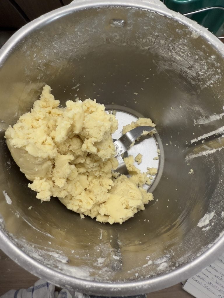 Sie können dieselben Schritte befolgen, die Sie auf den Fotos sehen, auch wenn Sie den Mürbeteig von Hand zubereiten.