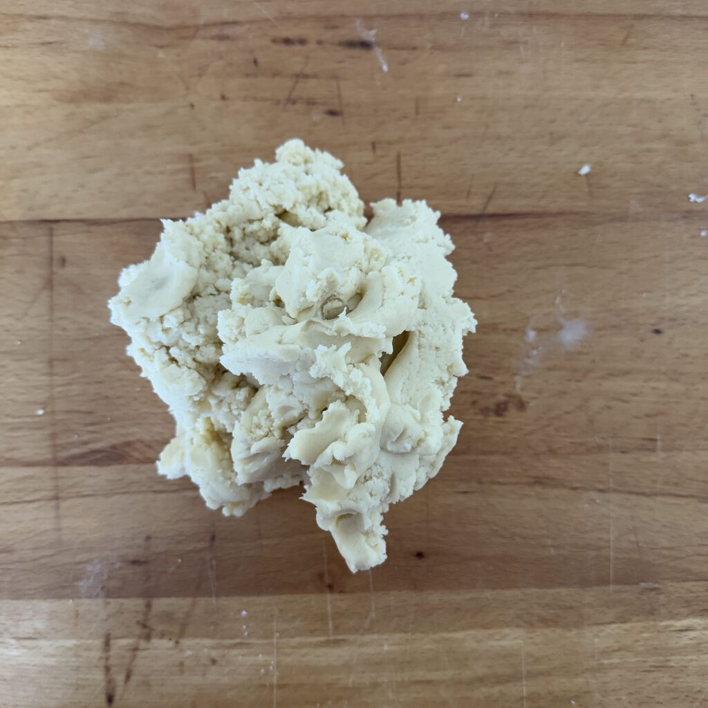 Bearbeiten Sie ihn schnell, ohne ihn zu stark zu erwärmen, und formen Sie ihn zu einem glatten Teigklumpen.
