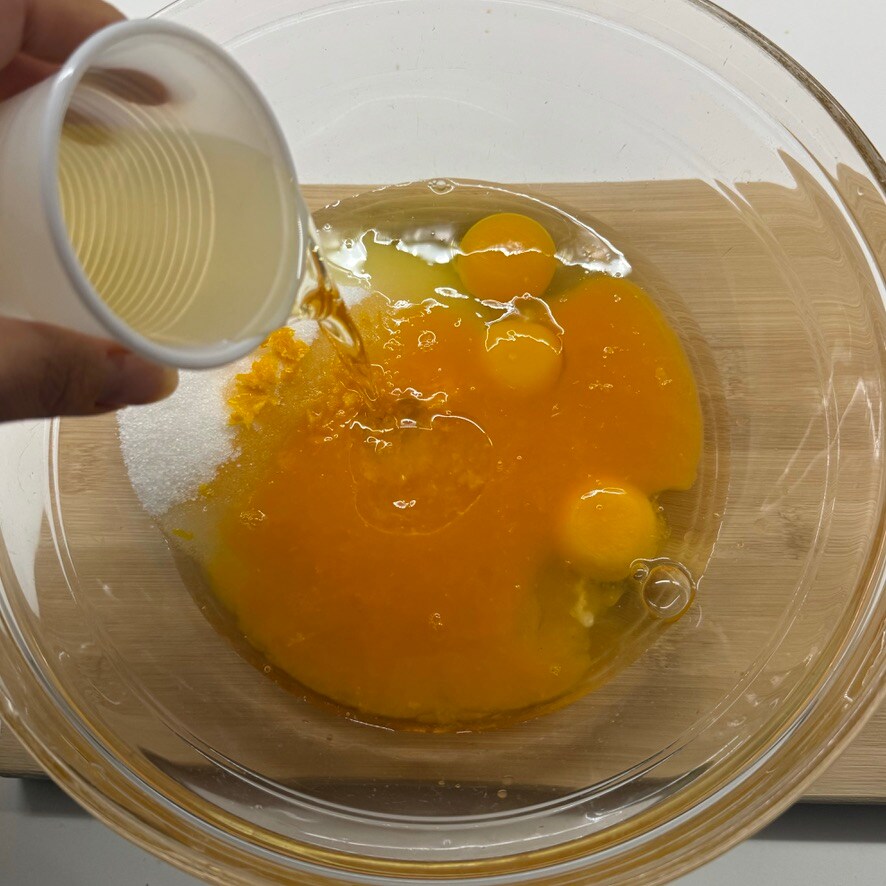 Fügen Sie auch das Sonnenblumenöl hinzu.