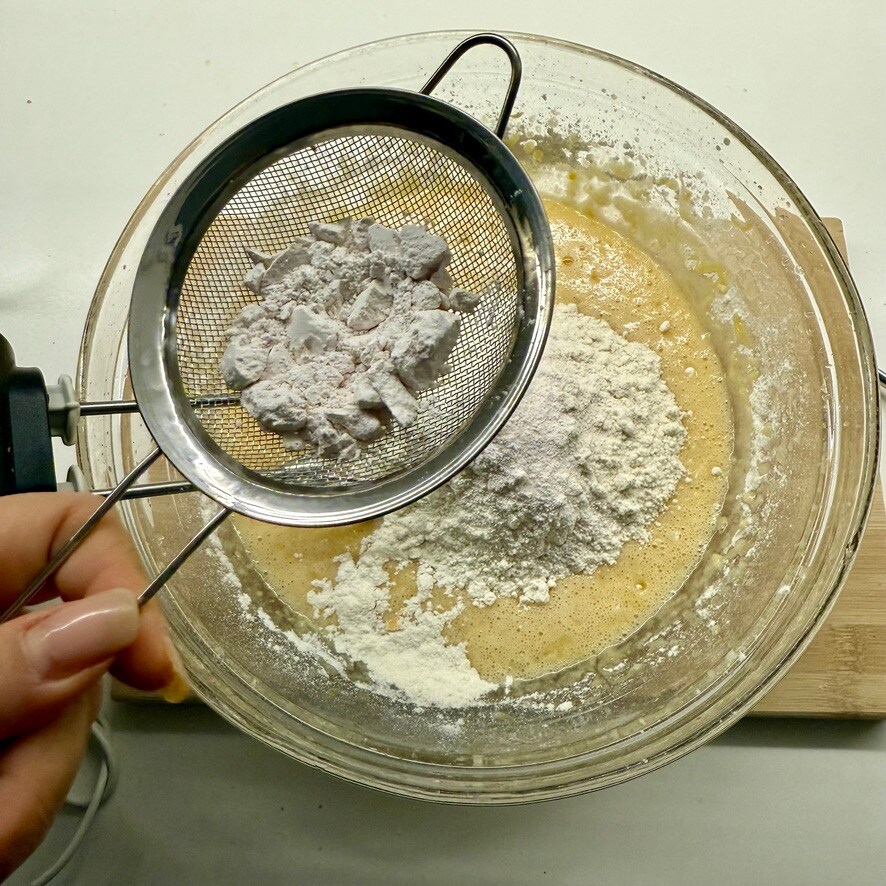 Zum Schluss das gesiebte Backpulver hinzufügen.