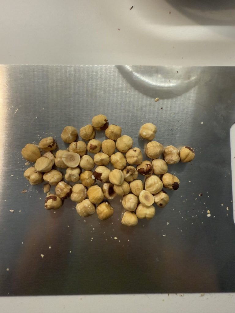 - 60 g ganze Haselnüsse (geröstet)