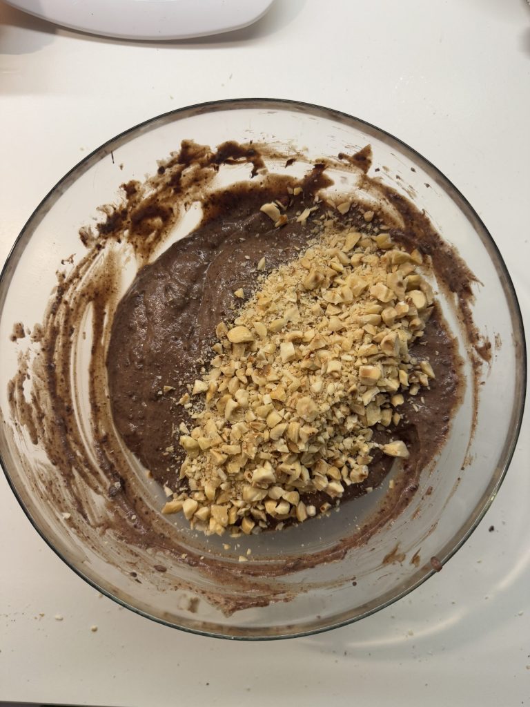 Fügen Sie die gehackten Haselnüsse zur Füllung hinzu und mischen Sie erneut.