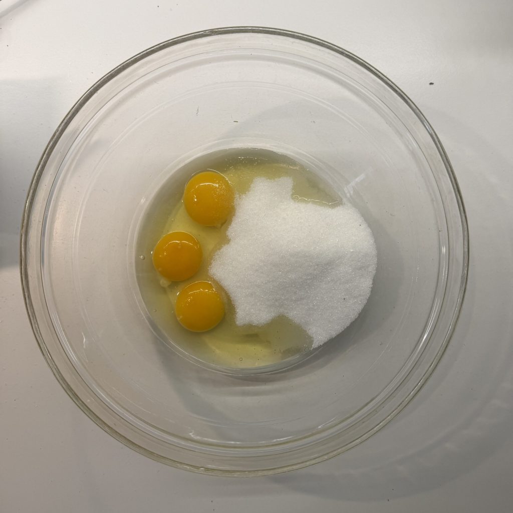 • Gebt die Eier und den Zucker in eine Schüssel.
