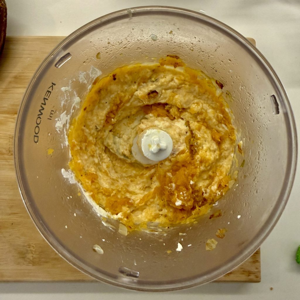 • Geben Sie den gekochten Kürbis in eine Küchenmaschine.