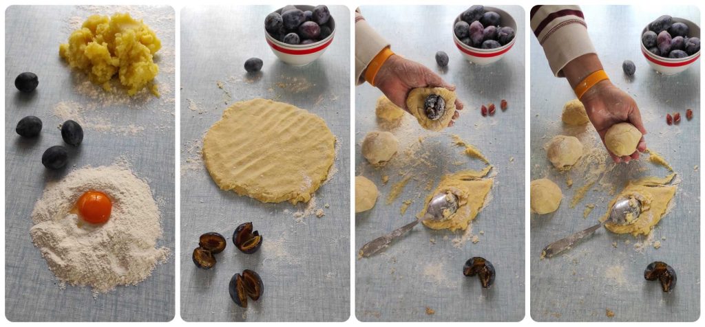 Nachdem ich sie vor ein paar Jahren direkt in Triest probiert hatte, hatte ich mir vorgenommen, sie zu Hause zuzubereiten. Man braucht schmackhafte und feste Zwetschgen, wie die Stanley-Zwetschgen, klein, oval und mit violetter Schale. Sie sind im September reif, aber auch im Oktober erhältlich, und ich habe genau diese verwendet. Die Zubereitung der Kartoffel- und Zwetschgenknödel ist wirklich einfach, vorausgesetzt, man hat die richtigen Zutaten zur Verfügung.