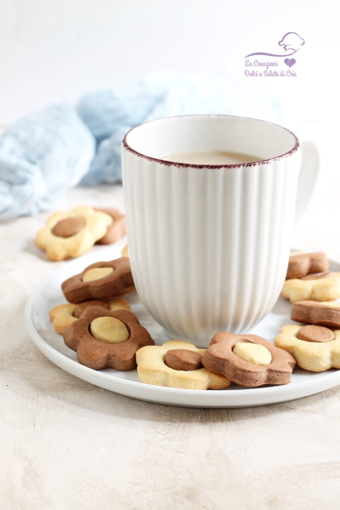 Schokoladen- und Vanillekekse, die Güte der einfachen Dinge. Ein einfacher Mürbeteig, der auf zwei Arten aromatisiert wird: ein Teil mit Kakao und ein Teil mit Vanille, um diese köstlichen Kekse zu kreieren, die perfekt sind, um sie mit einem guten Tee oder einer Tasse Milch für Ihre Kinder zu servieren. Und gerade mit ihnen können Sie Spaß daran haben, sie mit zwei kleinen Ausstechformen herzustellen.