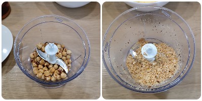 Die Haselnüsse hacken und beiseite stellen (sie werden später zusammen mit den trockenen Zutaten hinzugefügt).