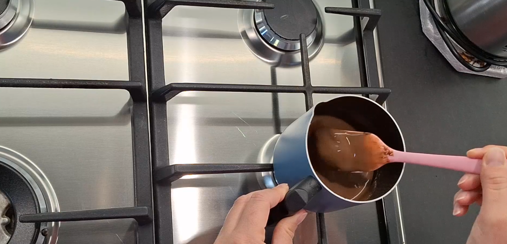 Lasse die Schokolade nicht zu stark kochen: Koche sie sanft, um zu vermeiden, dass sie anbrennt und cremig bleibt.