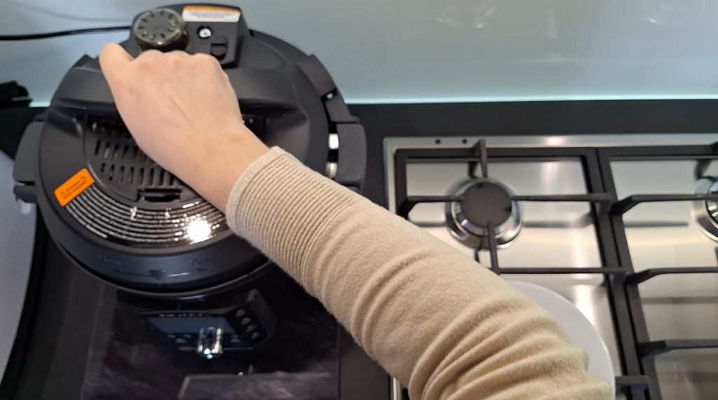 Schließe den Deckel und stelle Pressure Cook – hohe Stufe – 20 Minuten ein. Am Ende lasse natürlichen Druckablass für 10 Minuten, dann lasse den Dampf manuell ab.