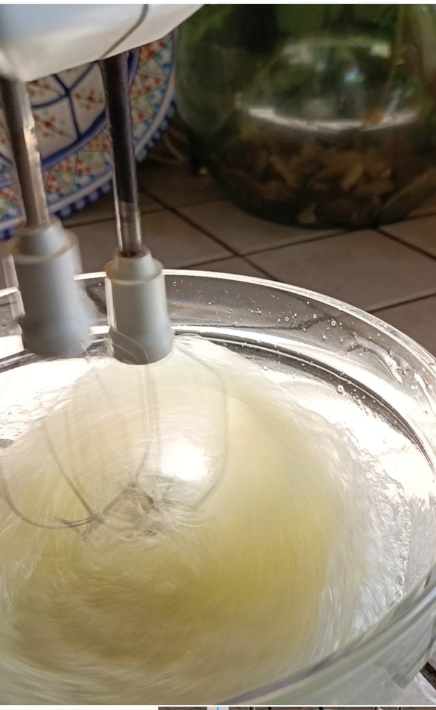 • Vermenge die Eiweiße vorsichtig mit den Eigelben mit einer Bewegung von unten nach oben. Füge Mehl und Backpulver hinzu, die geriebene Zitronenschale und Vanillin. Du solltest eine luftige und schaumige Masse erhalten.
