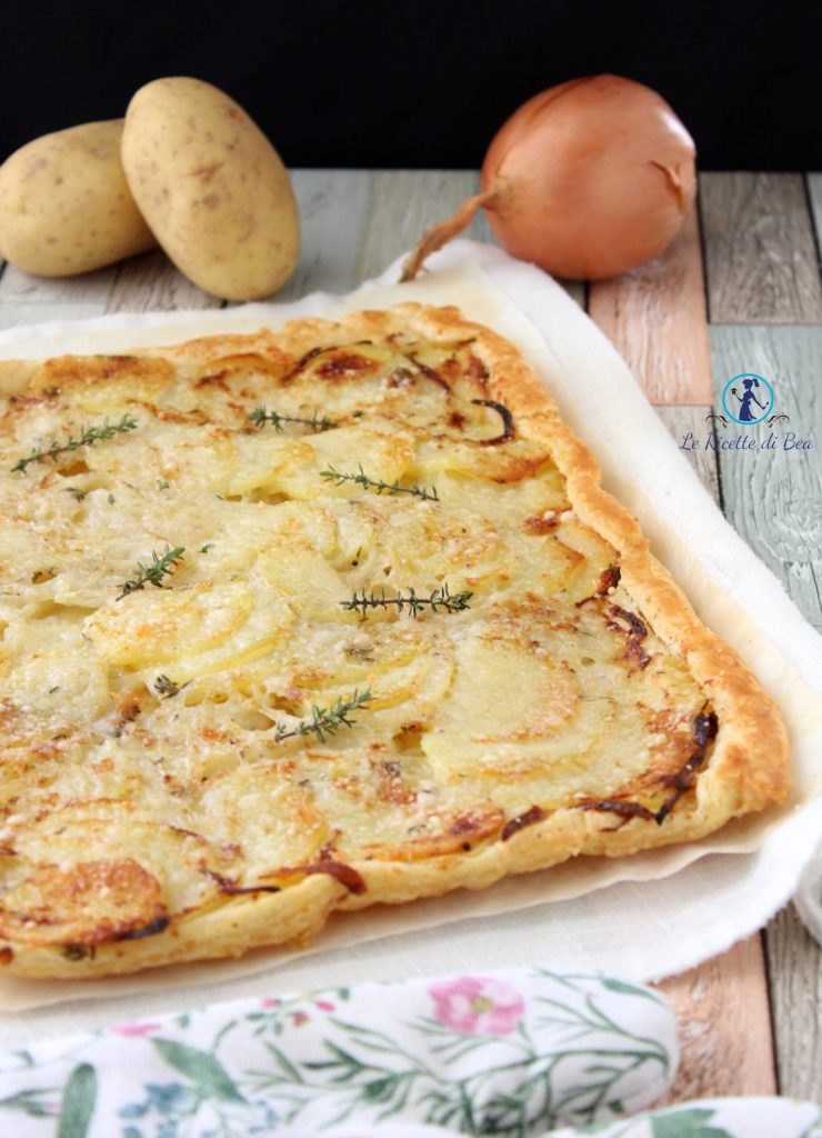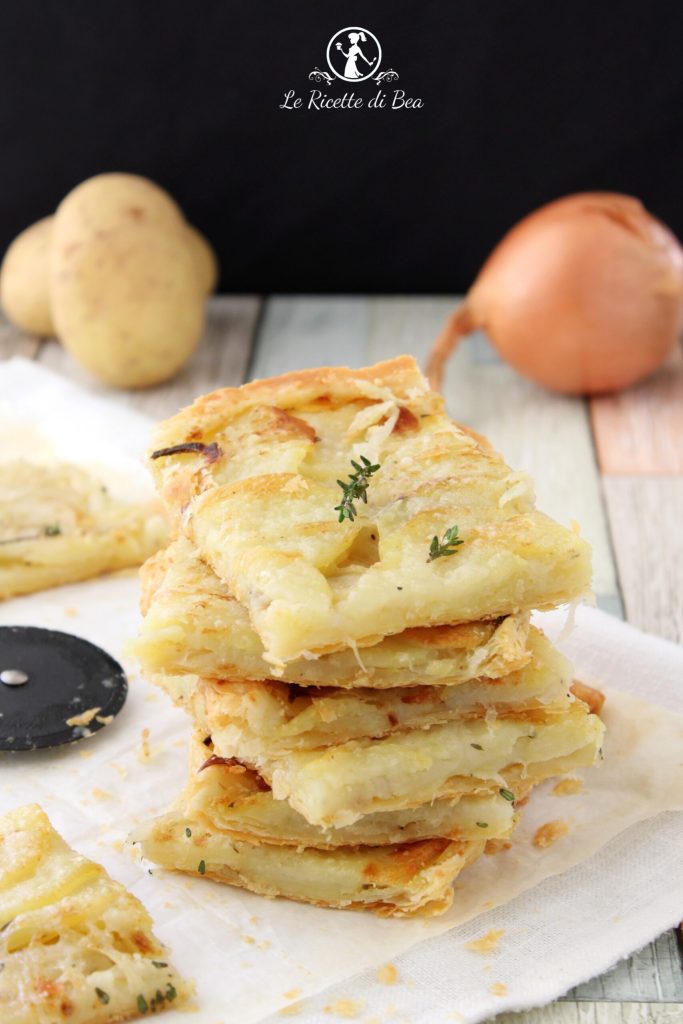 Bereit für ein einfaches Rezept, perfekt für ein Abendessen oder ein Aperitif mit FreundenBlätterteig‑Tarte mit Kartoffeln und Zwiebeln zu! Vielleicht ist es nicht ganz eine klassische „sfogliata“, ich könnte sie genauso gut herzhafter Kuchen mit Kartoffeln und Zwiebeln nennen, denn ich verwende fertigen Blätterteig, aber ich nenne sie gern sfogliata, weil jede Schicht dieses Gerichts dem Gaumen eine Geschmacksexplosion schenkt!