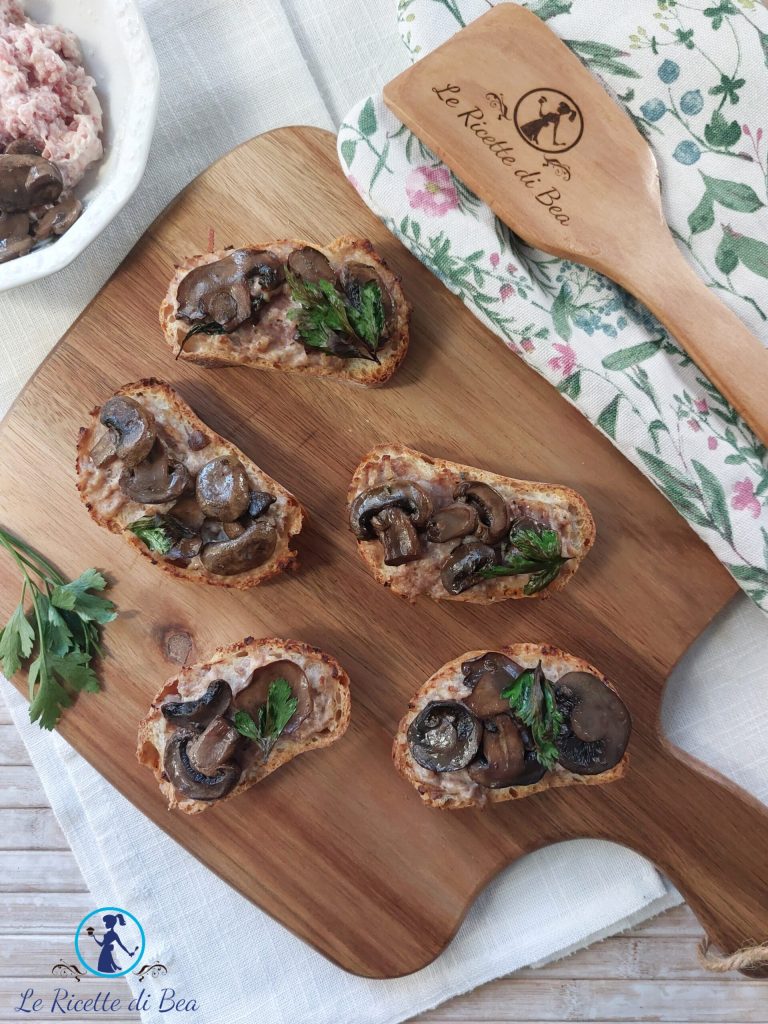 Seid ihr müde von den süßen Rezepten, die ich euch vorschlage? Bereiten wir die Crostini mit Wurst, Ricotta und Pilzen in wenigen und einfachen Schritten zu! Knusprig, lecker und super duftend! Was wollt ihr mehr? Besorgt euch altes Brot, zwei Würste, etwas Ricotta, einige in der Pfanne gedünstete Pilze nach meinem Rezept und wir können eine perfekte Vorspeise oder einen Aperitif vorbereiten, um Familie oder Freunde während der nahenden Feiertage zu empfangen!