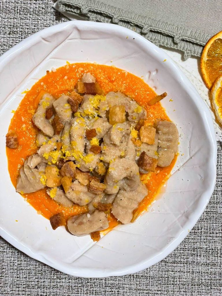 Das Ziel des Projekts ist zweifach: Einerseits sollen die lokalen Agrar- und Lebensmittelexzellenzen aufgewertet werden, andererseits soll ein bewusster Tourismus gefördert werden, der das Gebiet auch durch den Gaumen entdeckt. Jedes Rezept ist als Erzählung gedacht, als Einladung, Orte, Geschichten und Aromen kennenzulernen, die es wert sind, erlebt zu werden. Mit diesen Gnocchetti beginnen wir einen Weg, der uns zu drei weiteren gastronomischen Kreationen führen wird, jede verbunden mit einer identitätsstiftenden Zutat und einer zeitgenössischen Vision der traditionellen Küche.