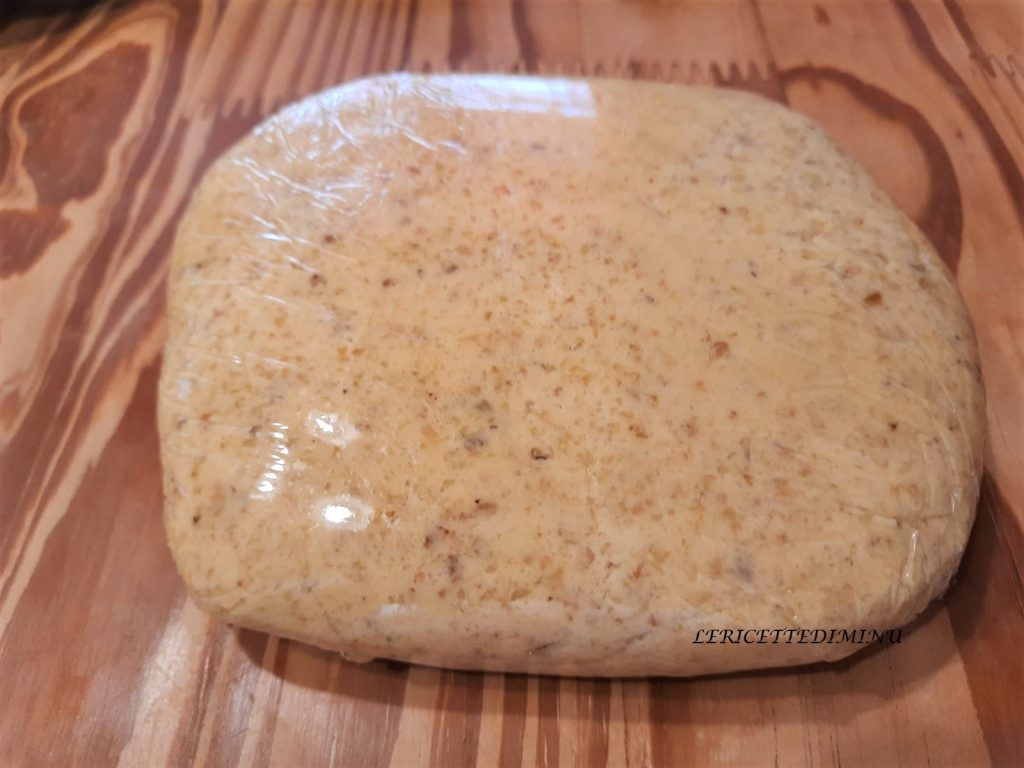Einige Stunden im Kühlschrank ruhen lassen, nachdem der Mürbeteig mit Frischhaltefolie versiegelt wurde.