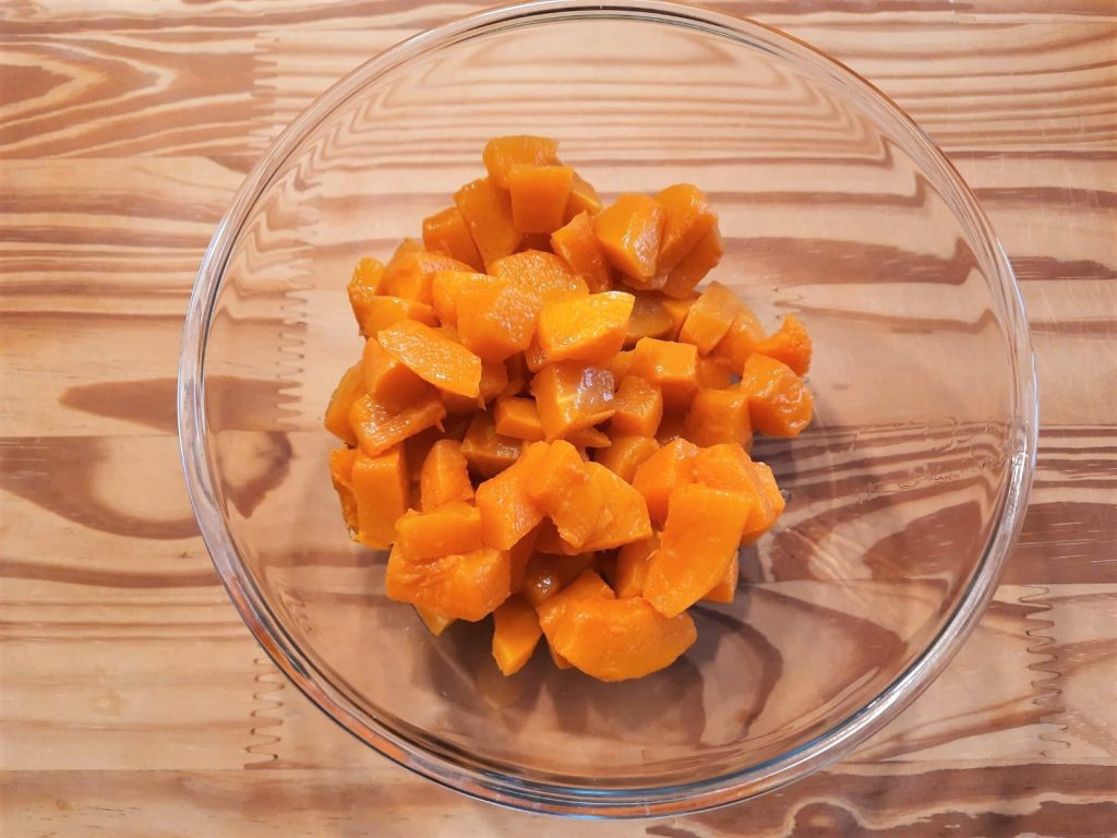 Bei 180 Grad im vorgeheizten Ofen, statische Funktion, mittlere/untere Ebene, für etwa 20/25 Minuten backen, oder bis der Kürbis weich ist.