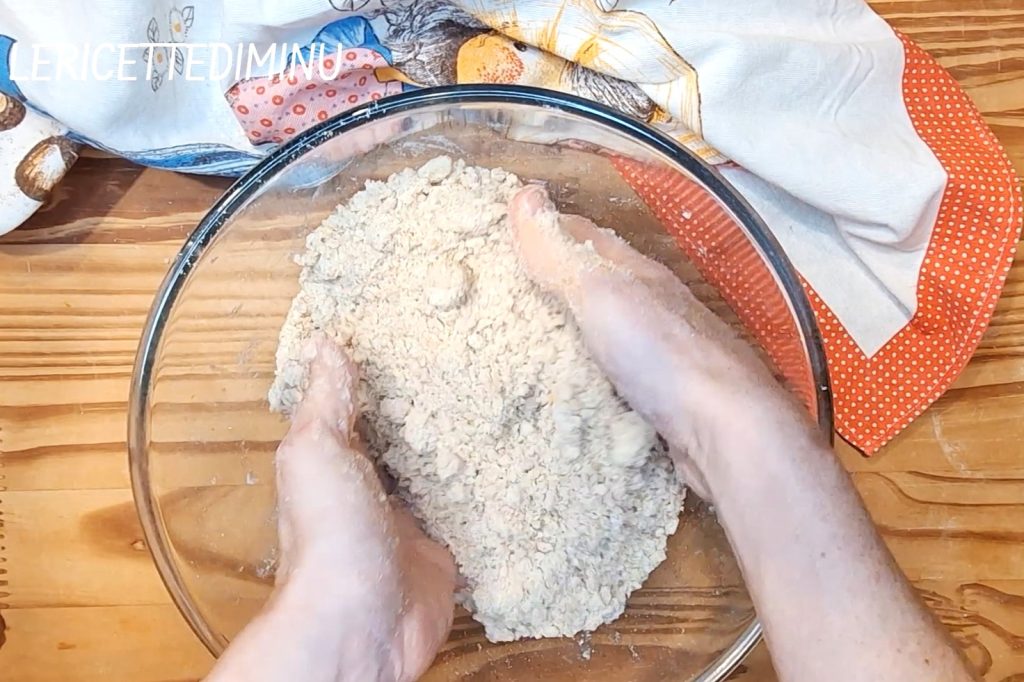 Mit den Händen schnell arbeiten, bis wir eine Mischung aus vielen Krümeln erhalten.