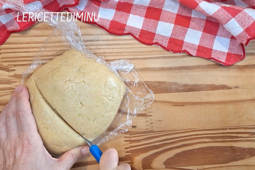 Schnell zu einem homogenen Teig kneten, in Frischhaltefolie wickeln und ein paar Stunden im Kühlschrank ruhen lassen.