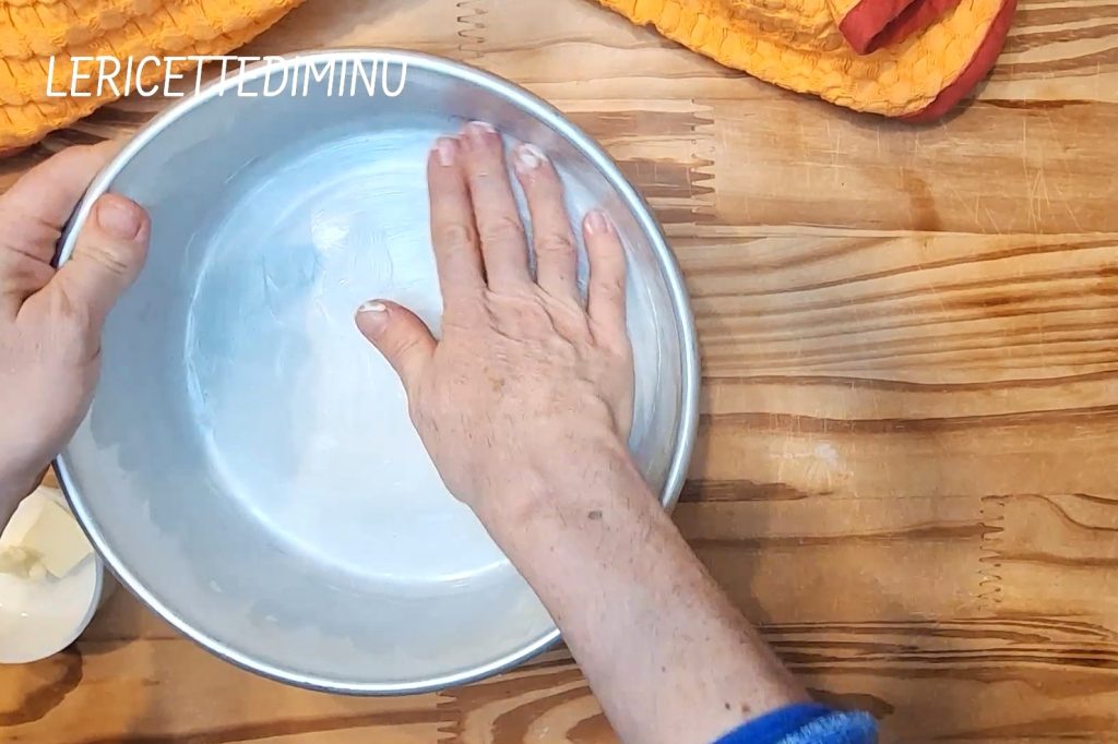 Um den Blaubeerkuchen zuzubereiten, beginnen Sie damit, eine Kuchenform mit einem Durchmesser von 22 cm zu buttern und zu bemehlen.