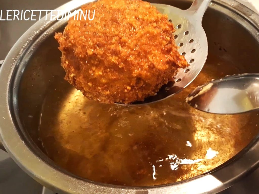 Dann in den Teig tauchen und schließlich in die Schüssel mit Paniermehl und Bröseln rollen.