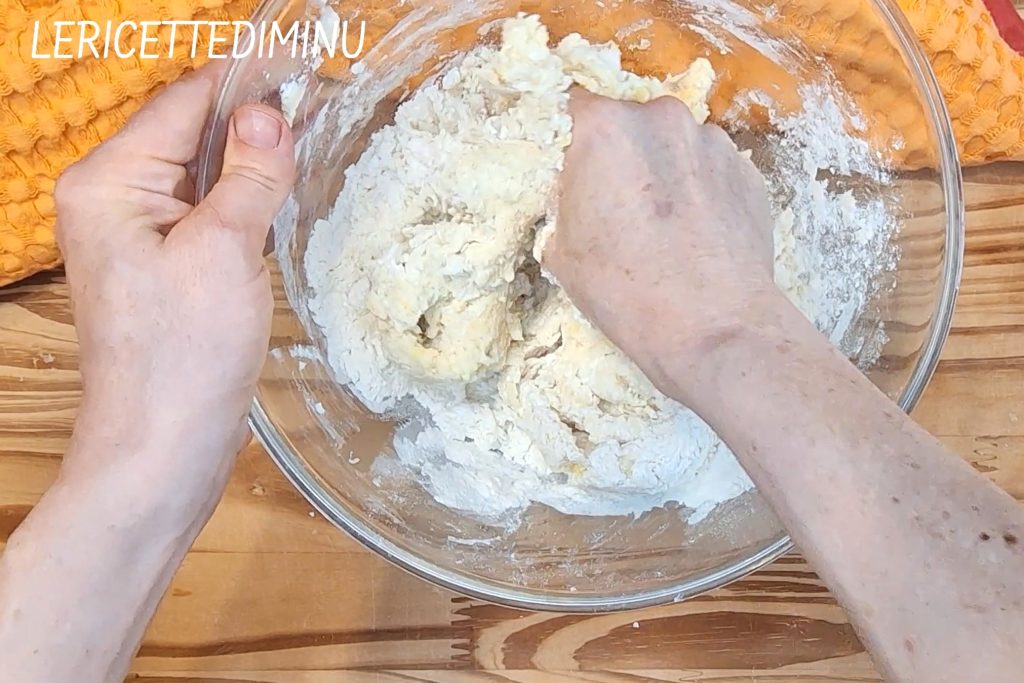 Beginnen Sie mit den Händen zu kneten und fügen Sie nach und nach die Milch hinzu, die benötigt wird, um einen weichen, formbaren, aber nicht klebrigen Teig zu erhalten.