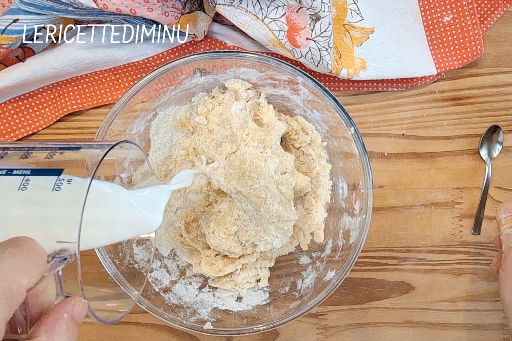 • Fügen Sie auch etwas Milch hinzu. Nur so viel hinzufügen, wie nötig ist, um einen weichen, aber nicht klebrigen Teig zu erhalten.