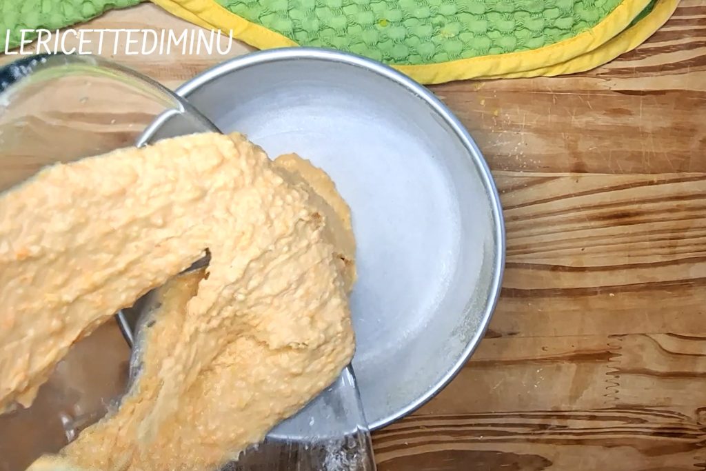 Sobald ein homogener Teig entstanden ist, die zerkleinerten Mandeln und die pürierten Karotten hinzufügen. Gut umrühren.