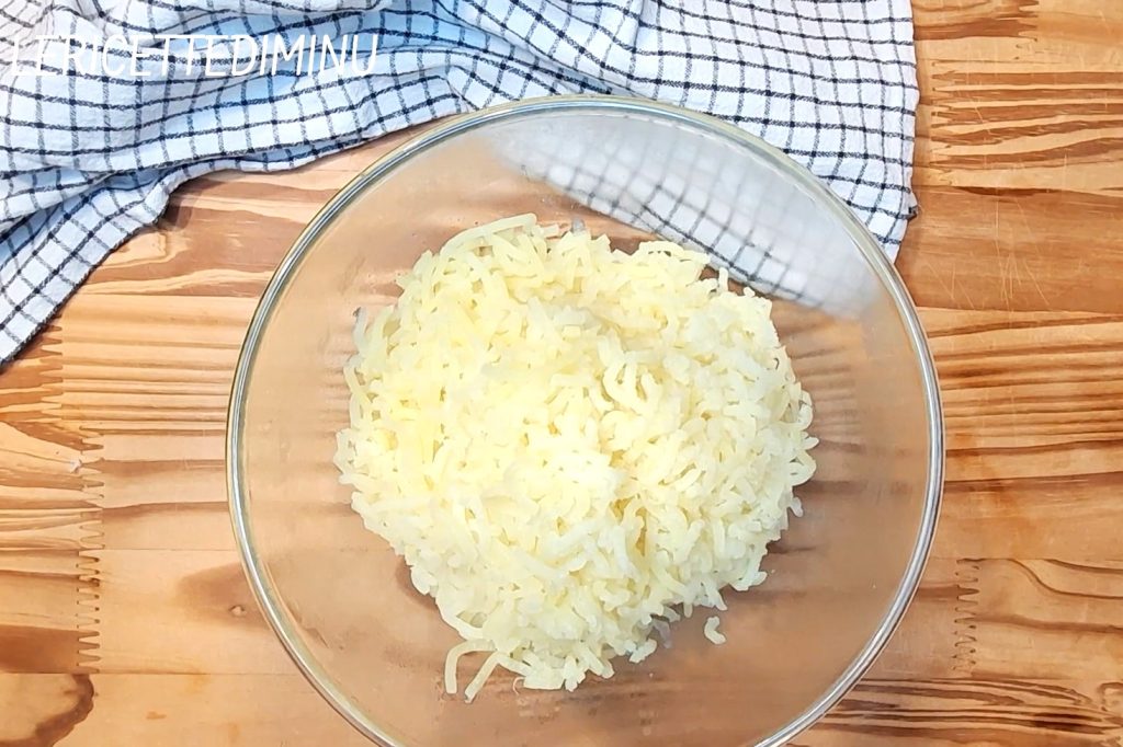 Zu der noch warmen Kartoffelmasse füge ich die traditionellen Zutaten hinzu: Butter, Milch und Muskatnuss. Und für ein noch köstlicheres und geschmackvolleres Ergebnis lasse ich eine großzügige Menge geriebenen Parmesankäse nicht fehlen.