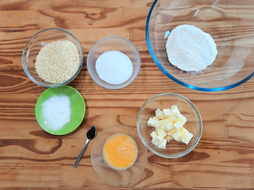Der Mürbeteig mit Mandeln ist nun fertig.