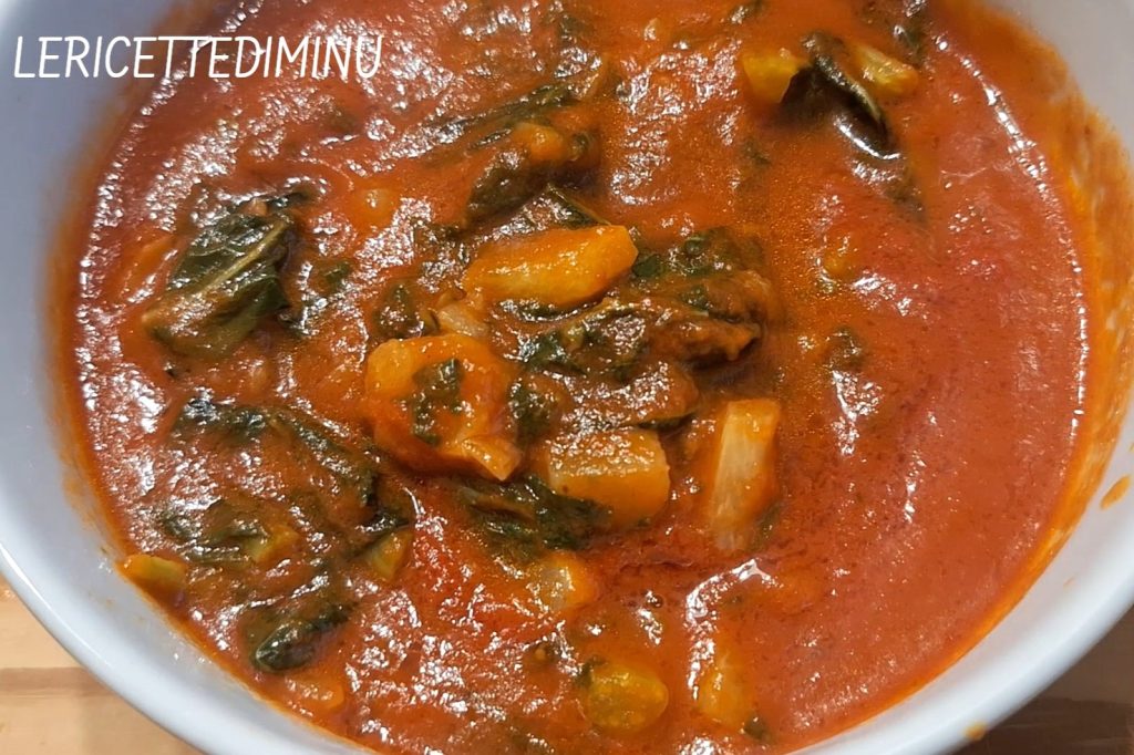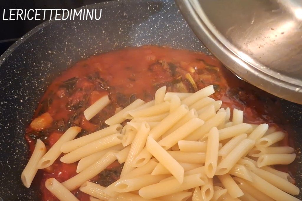 An diesem Punkt den abgeseihten Trunzo in die Pfanne geben und erneut mit Deckel abdecken, etwa 15 Minuten schmoren lassen oder bis dieses Gemüse weich ist und die Sauce eingedickt ist.