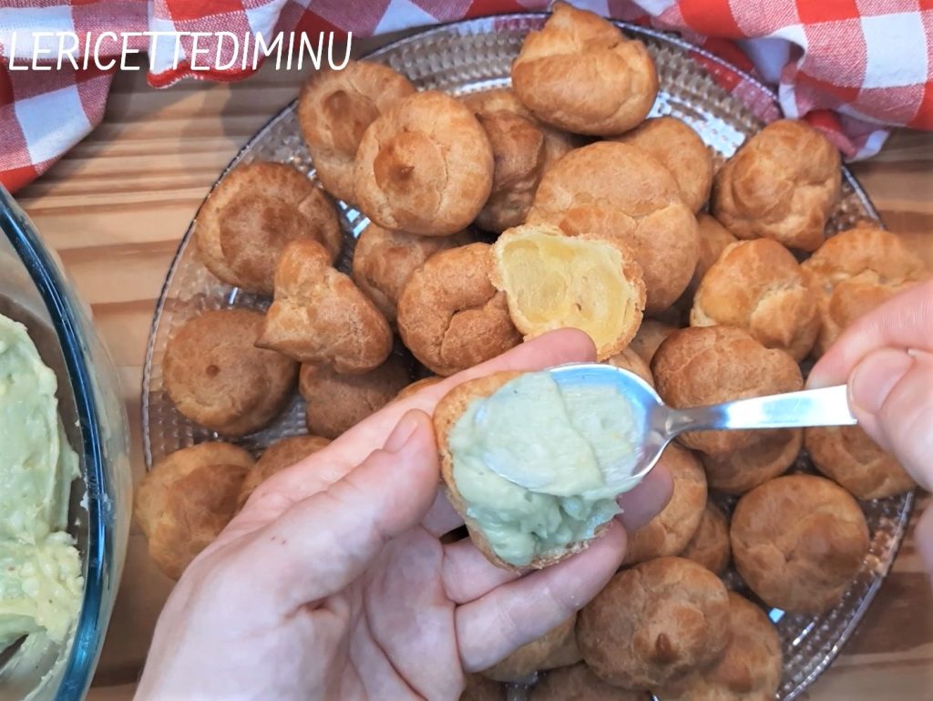 Die Profiterol mit Pistazien sind köstliche Windbeutel, gefüllt mit einer Creme mit Pistaziengeschmack.