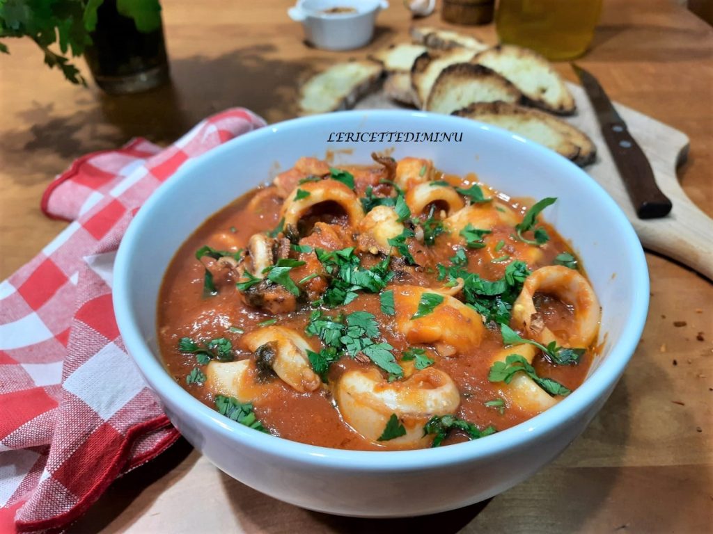 Das Rezept für Tintenfische in Tomatensauce ist so bereit.