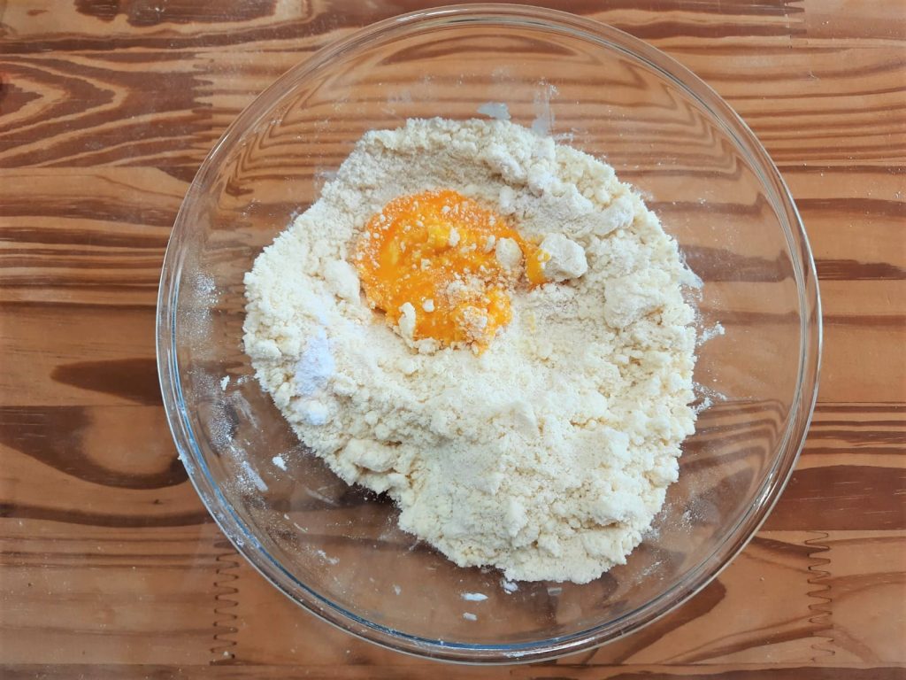 Für die Zubereitung der Ricotta-Feigen-Torte zuerst das Mehl und die kalte in Stückchen geschnittene Butter verarbeiten, dann den Zucker, die geschlagenen Eier, das gesiebte Backpulver, den Vanilleextrakt und eine Prise Salz hinzufügen und einarbeiten.