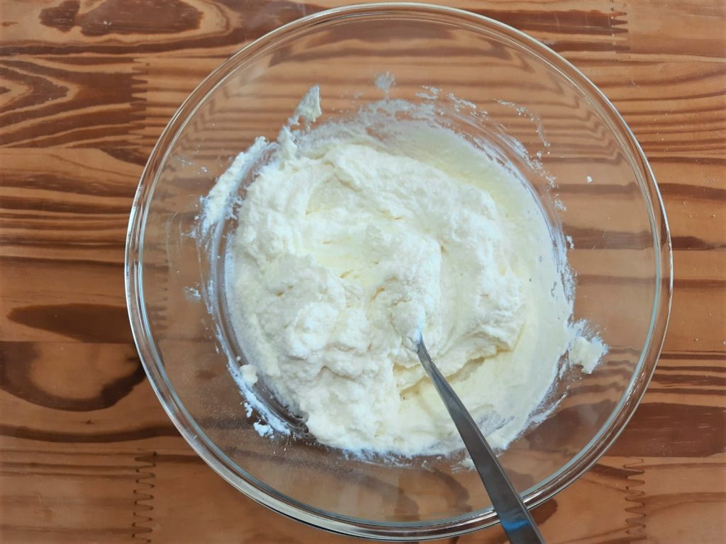 Die 4 Feigen in kleine Teile schneiden und vorsichtig mit einem Löffel oder einem Spatel einarbeiten.
