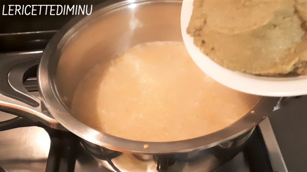 Die Artischockencreme herstellen, indem alle entnommenen Artischocken püriert werden. Wenn die Artischocken etwas hart sind und die resultierende Creme Fasern aufweist, kann sie durch eine Passiermühle oder ein Sieb gegeben werden, um sie zu entfernen.