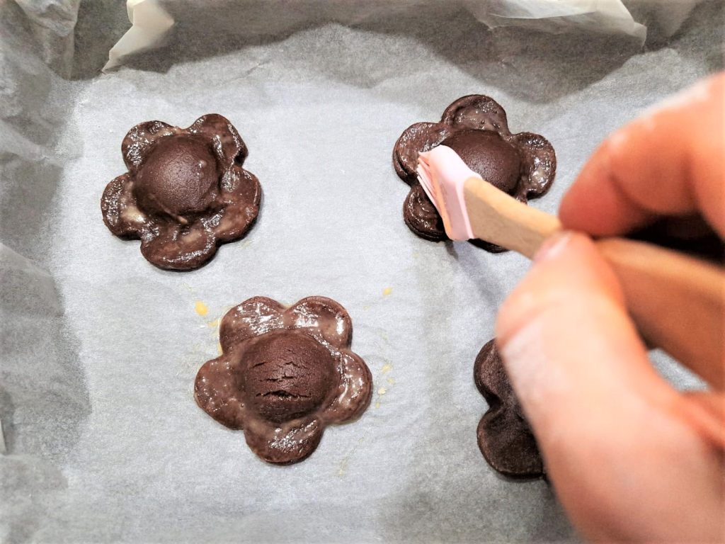 Bei Raumtemperatur trocknen lassen, bevor die Kekse auf ein Tablett gelegt werden.