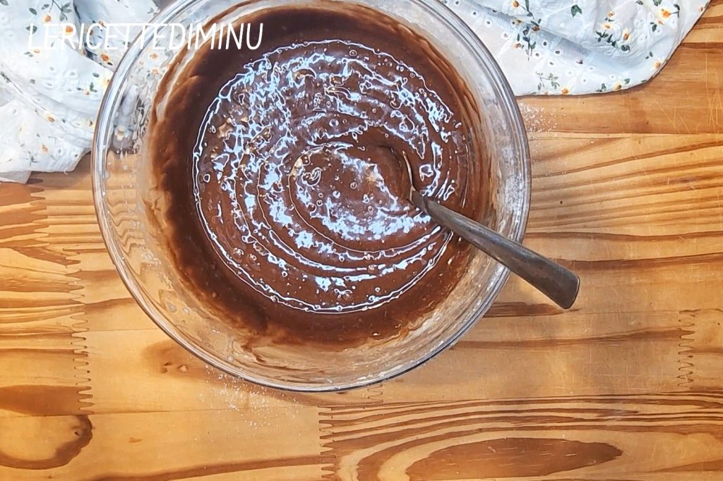 An dieser Stelle die geschmolzene Schokolade mit der Butter hinzufügen und mit einem Löffel unter den Teig mischen.