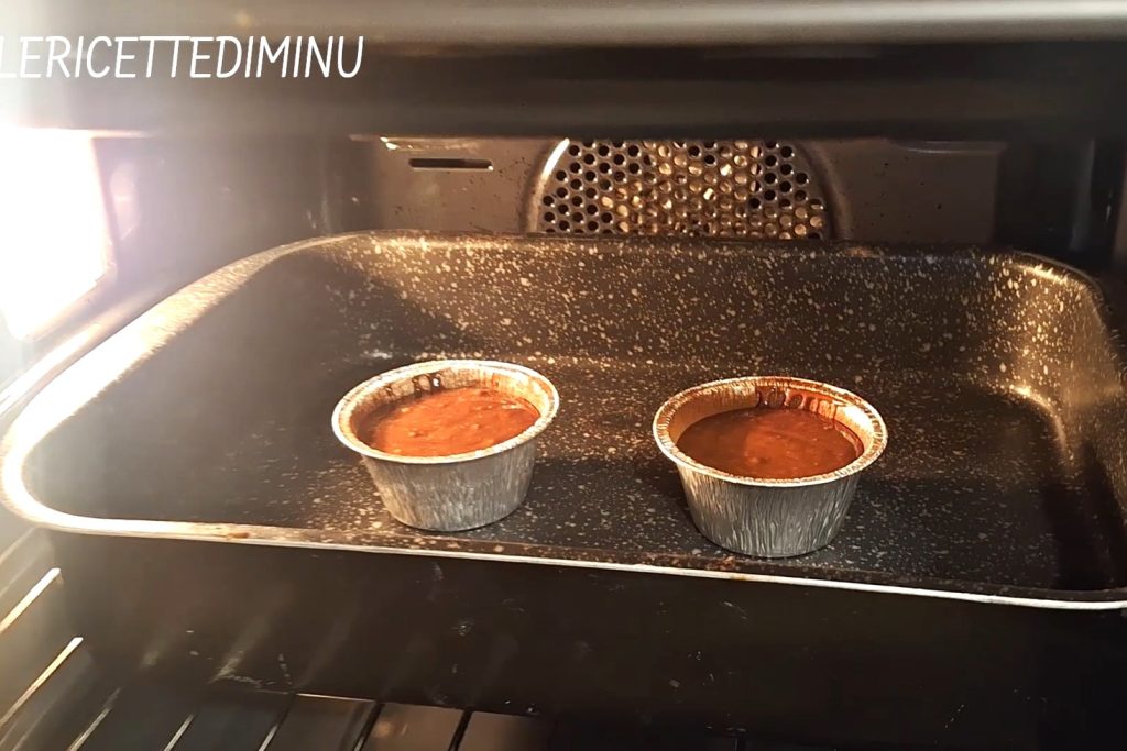 Sofort die bereits gebackenen Küchlein genießen. Die anderen, bereits in Aluminiumförmchen organisiert, einfrieren. Für diese, die gefroren gebacken werden, muss die Backzeit um ein paar Minuten verlängert werden, also 16 Minuten bei 180 Grad und nicht 14, unter Beachtung der gleichen in der Rezeptur angegebenen Methoden.